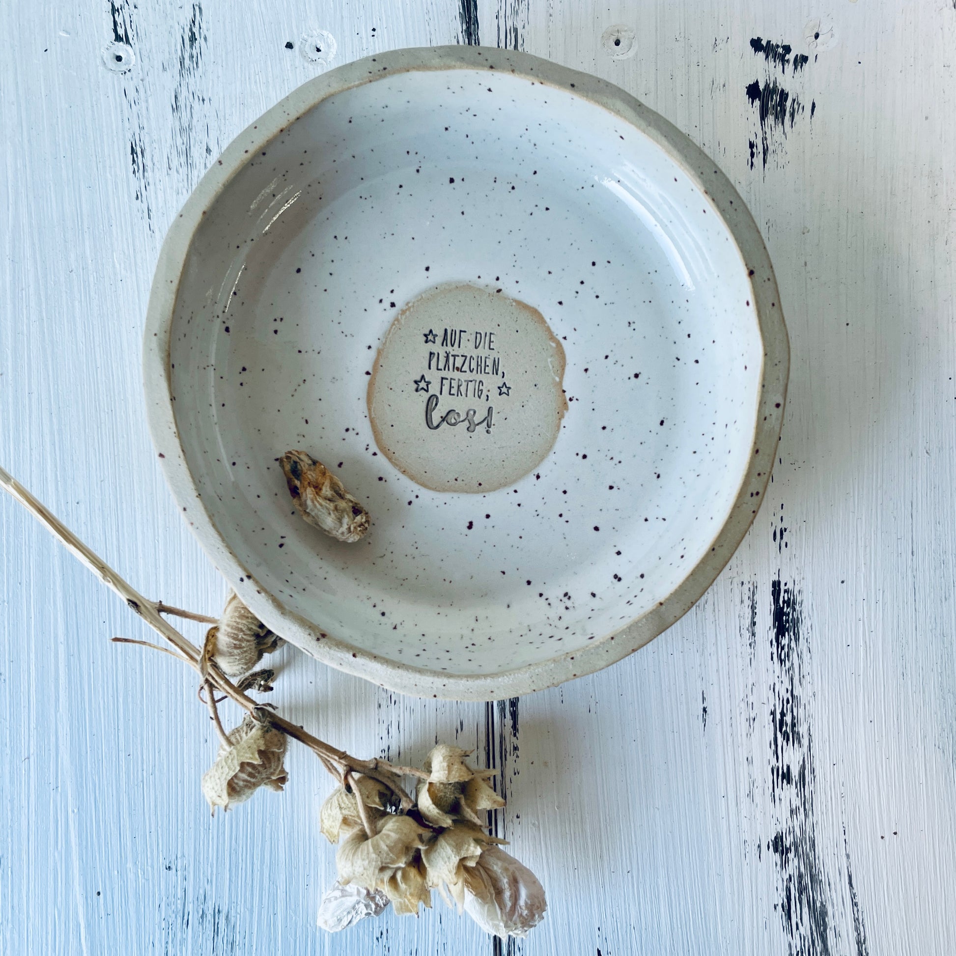 Keksteller „Auf die Plätzchen, fertig, los!“ – 14 cm · Handgemachte Keramik