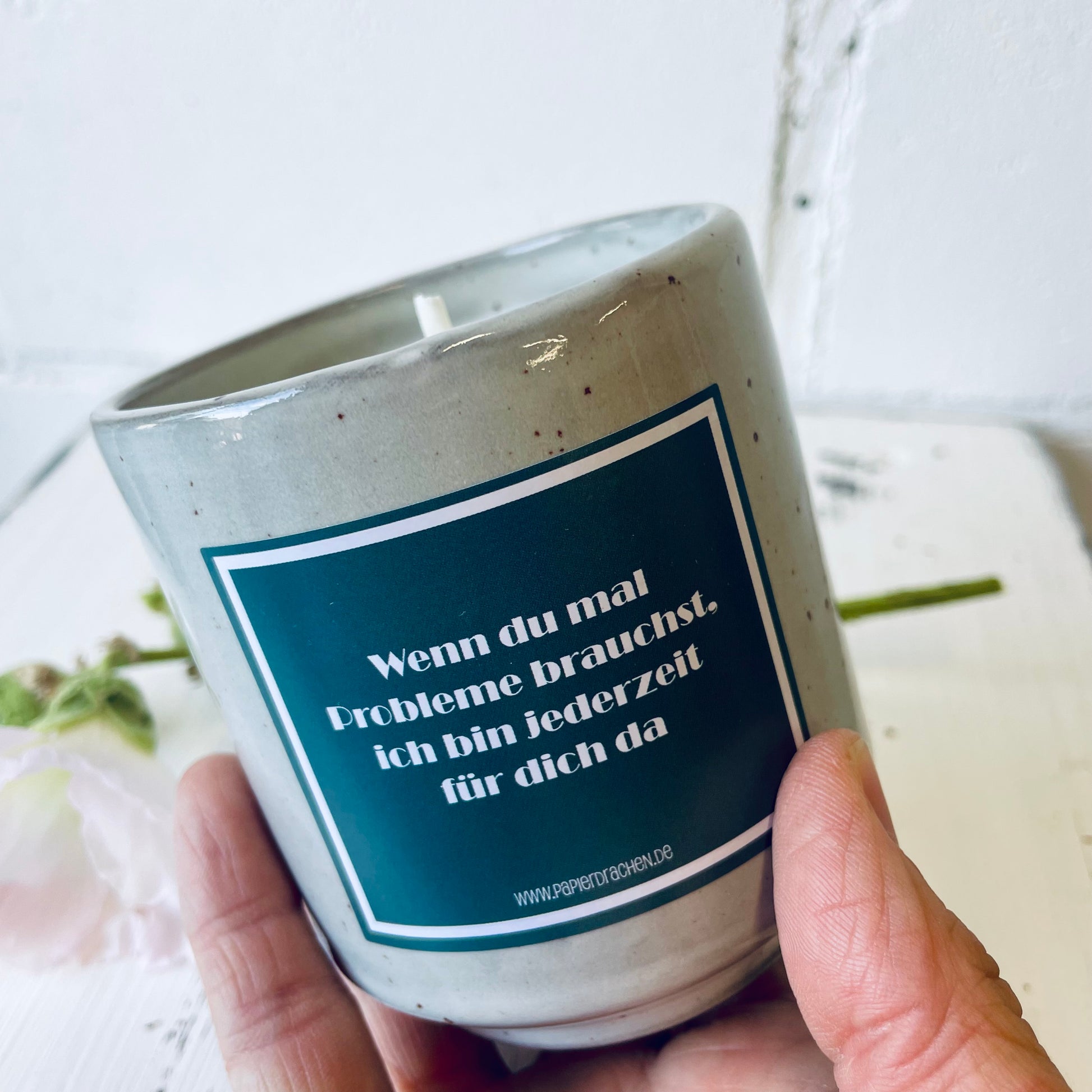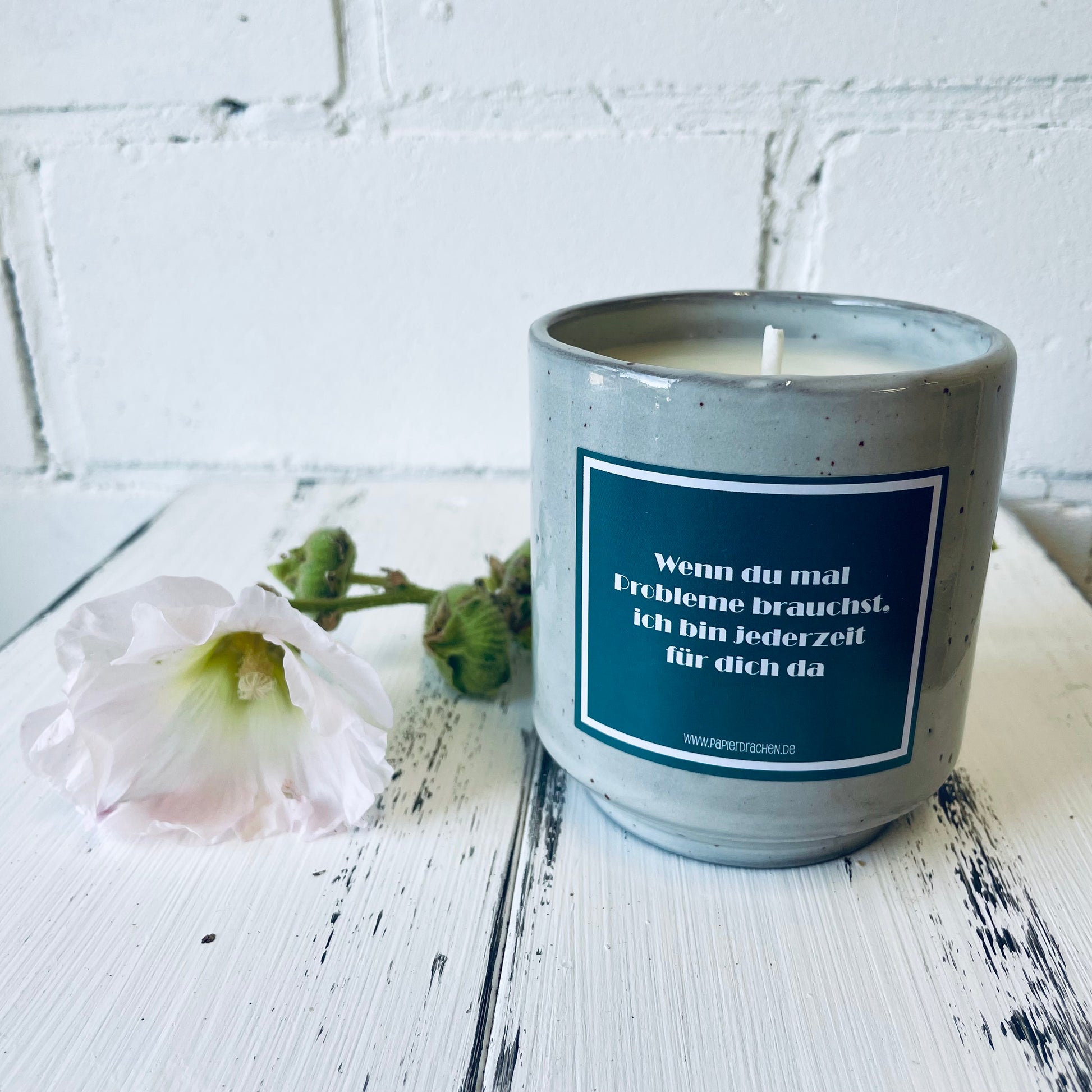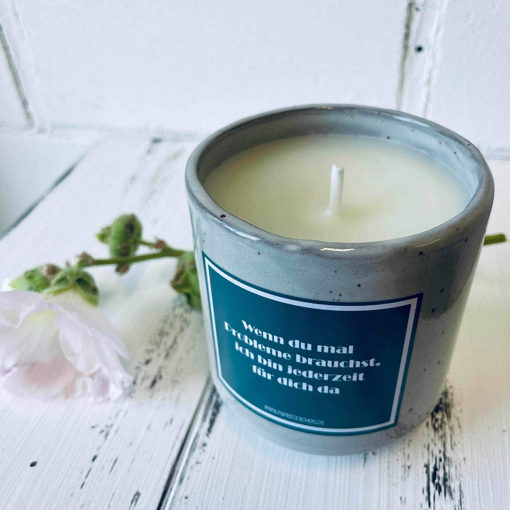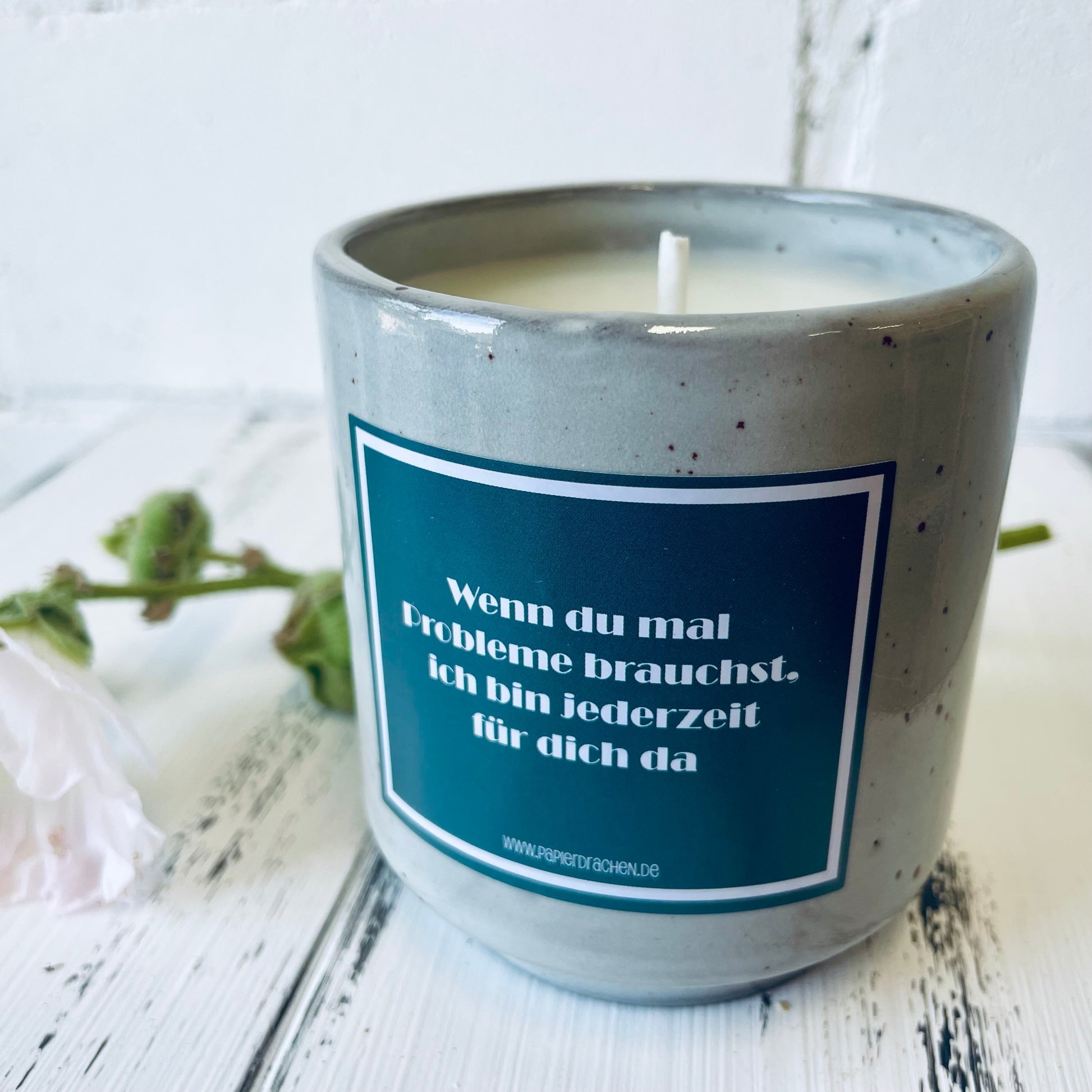 Geburtstagskerze – „Wenn du mal Probleme brauchst, ich bin jederzeit für dich da“, witzige Kerze, Bienenwachskerze, Steinzeugkeramik