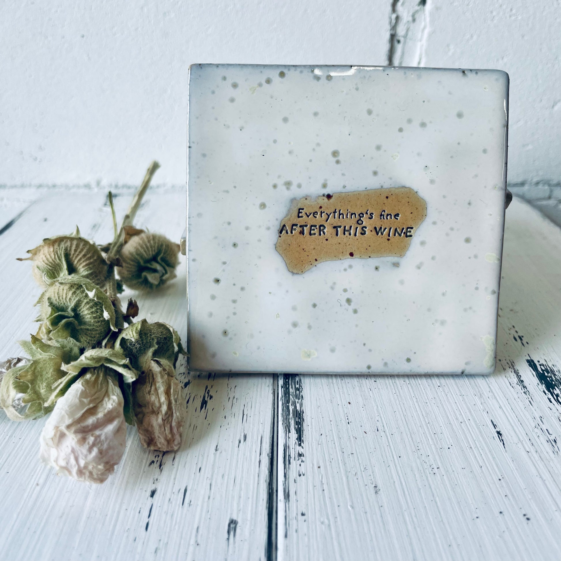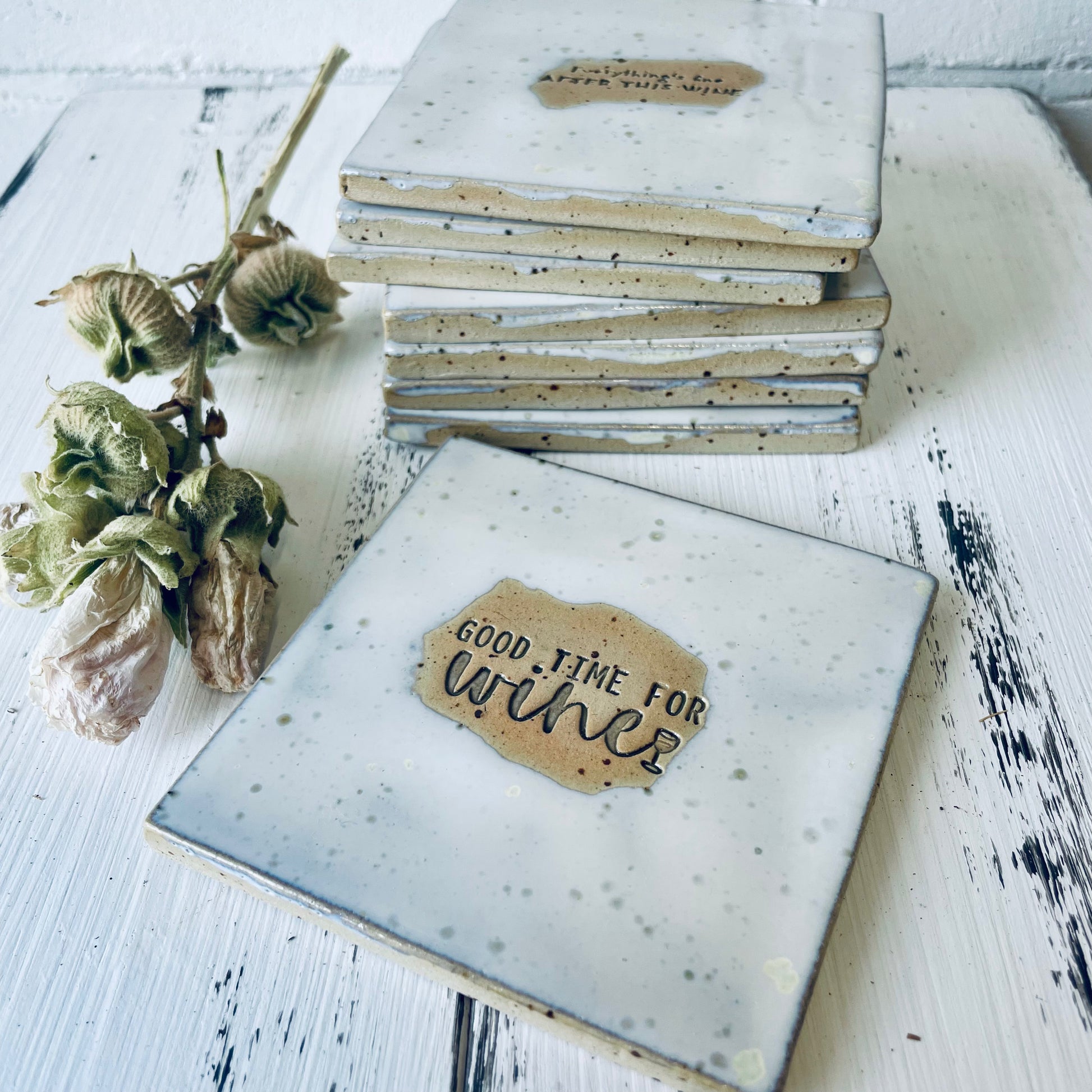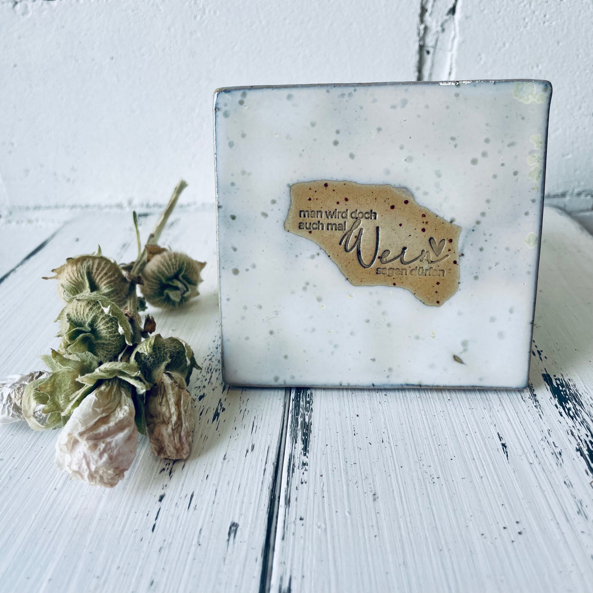 Jeder Untersetzer ist ein echtes Unikat: in Handarbeit gefertigt, glasiert und mit einem humorvollen Spruch versehen. Ideal als Geschenk für die beste Freundin, als Mitbringsel zur Party oder einfach für dich selbst, um deine Bar-Ecke aufzupeppen.