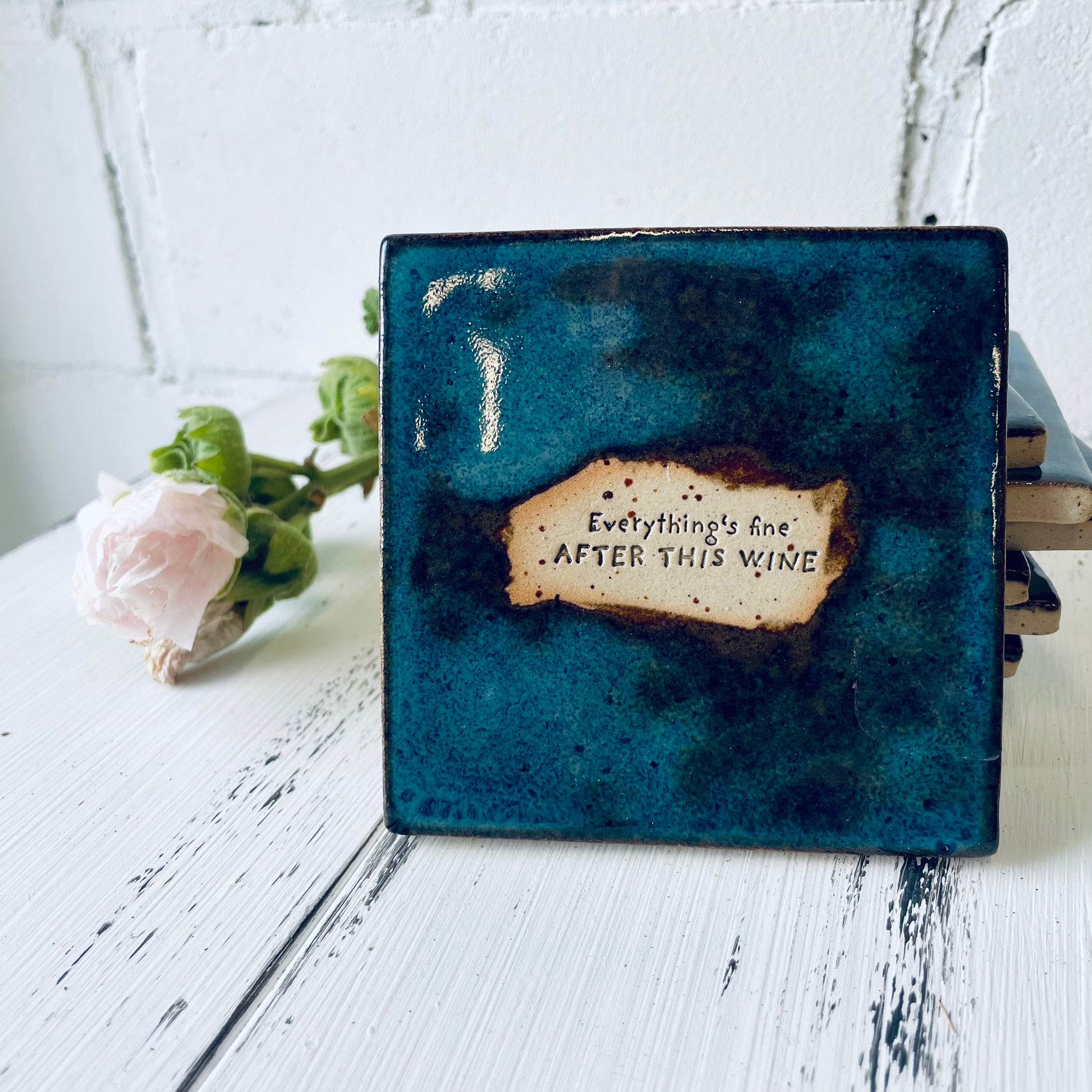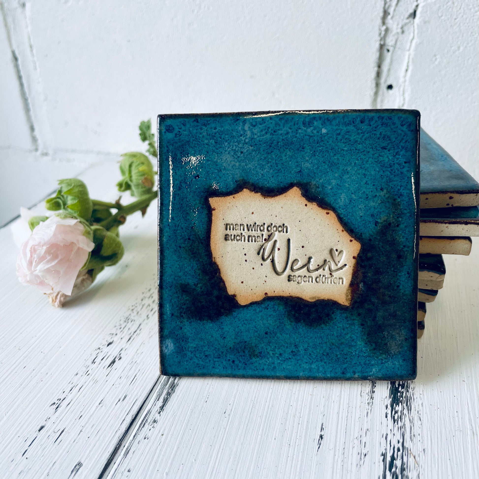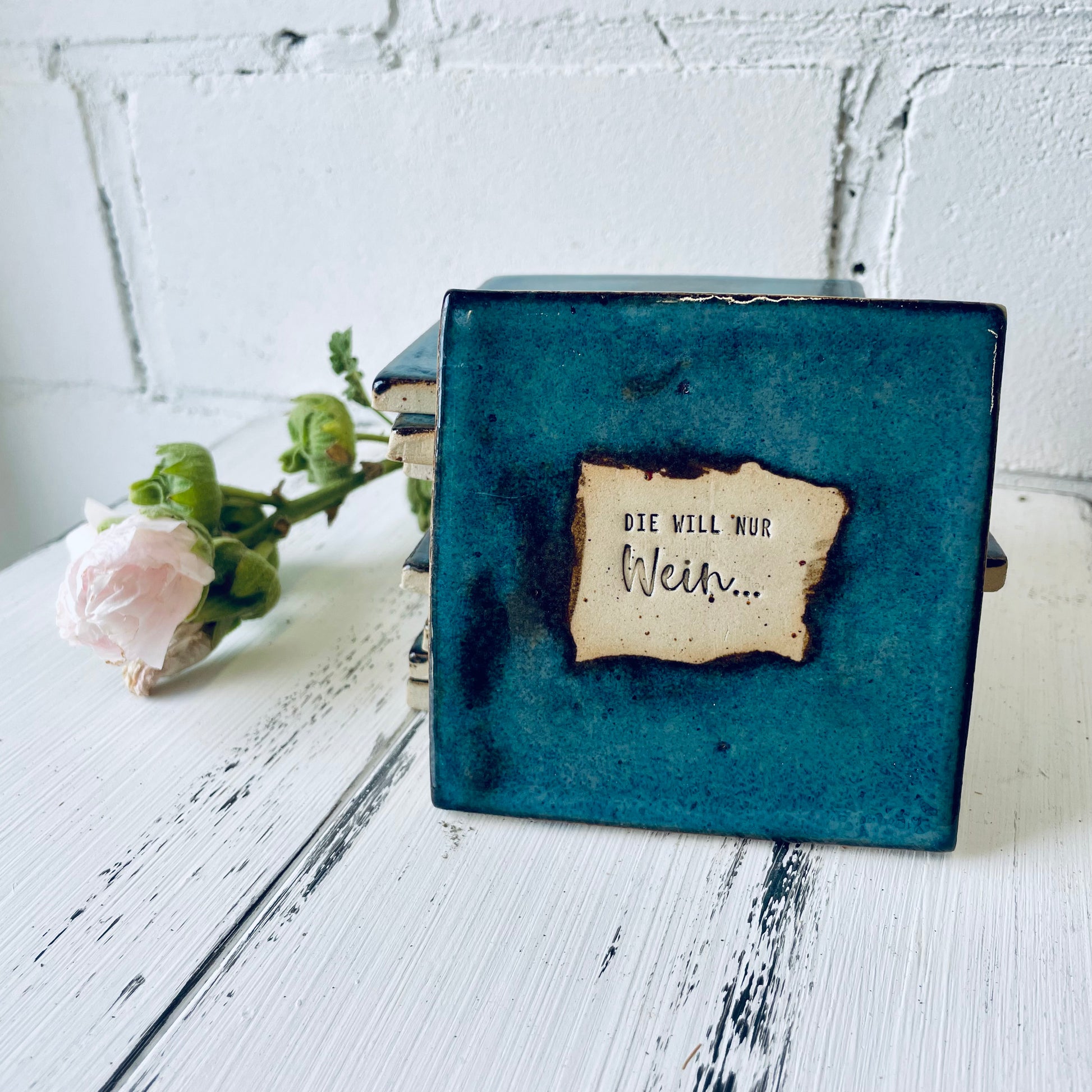 Jeder Untersetzer ist ein echtes Unikat: in Handarbeit gefertigt, glasiert und mit einem humorvollen Spruch versehen. Ideal als Geschenk für die beste Freundin, als Mitbringsel zur Party oder einfach für dich selbst, um deine Bar-Ecke aufzupeppen.