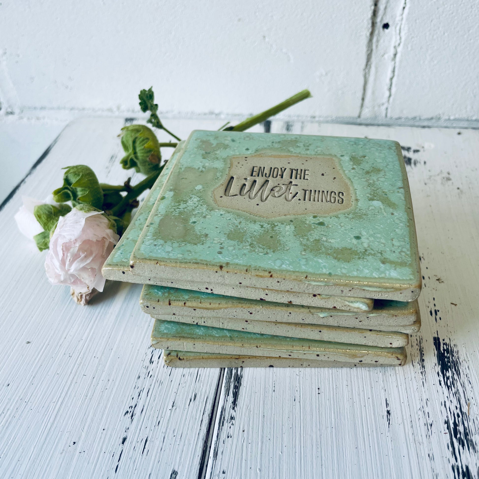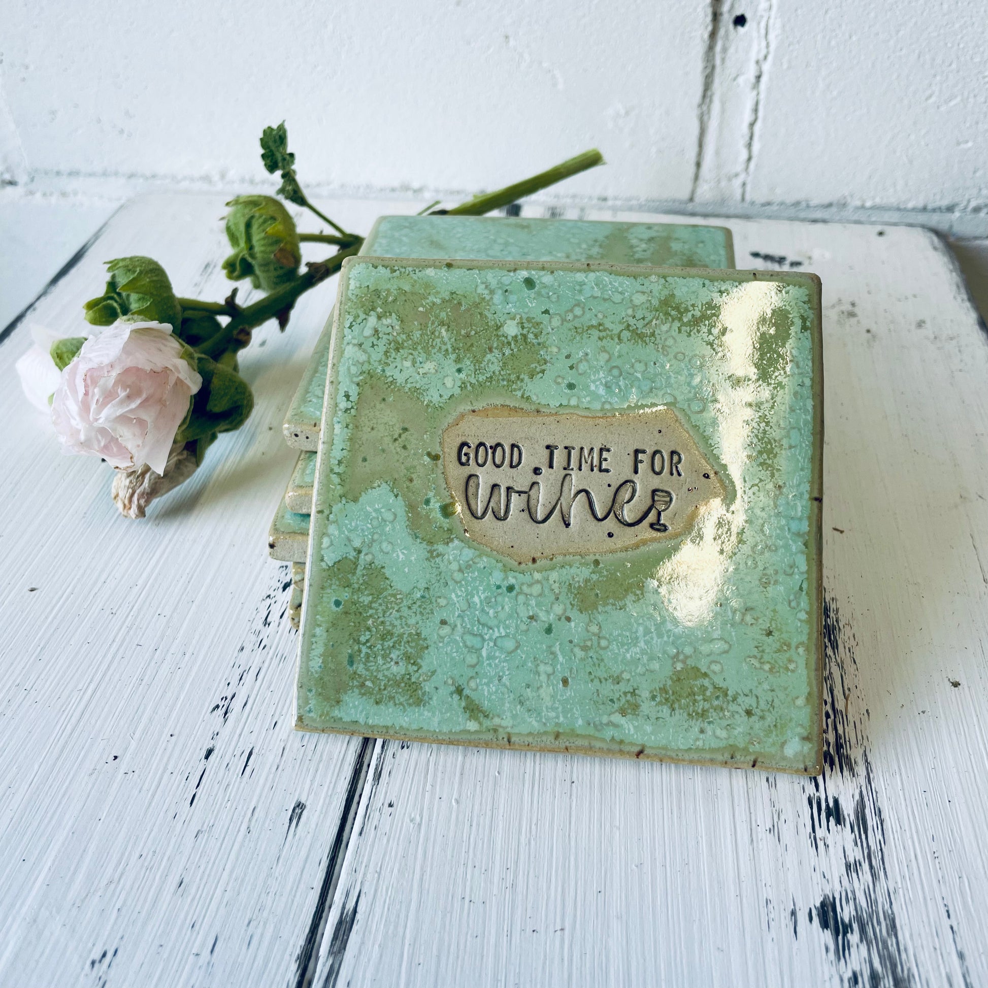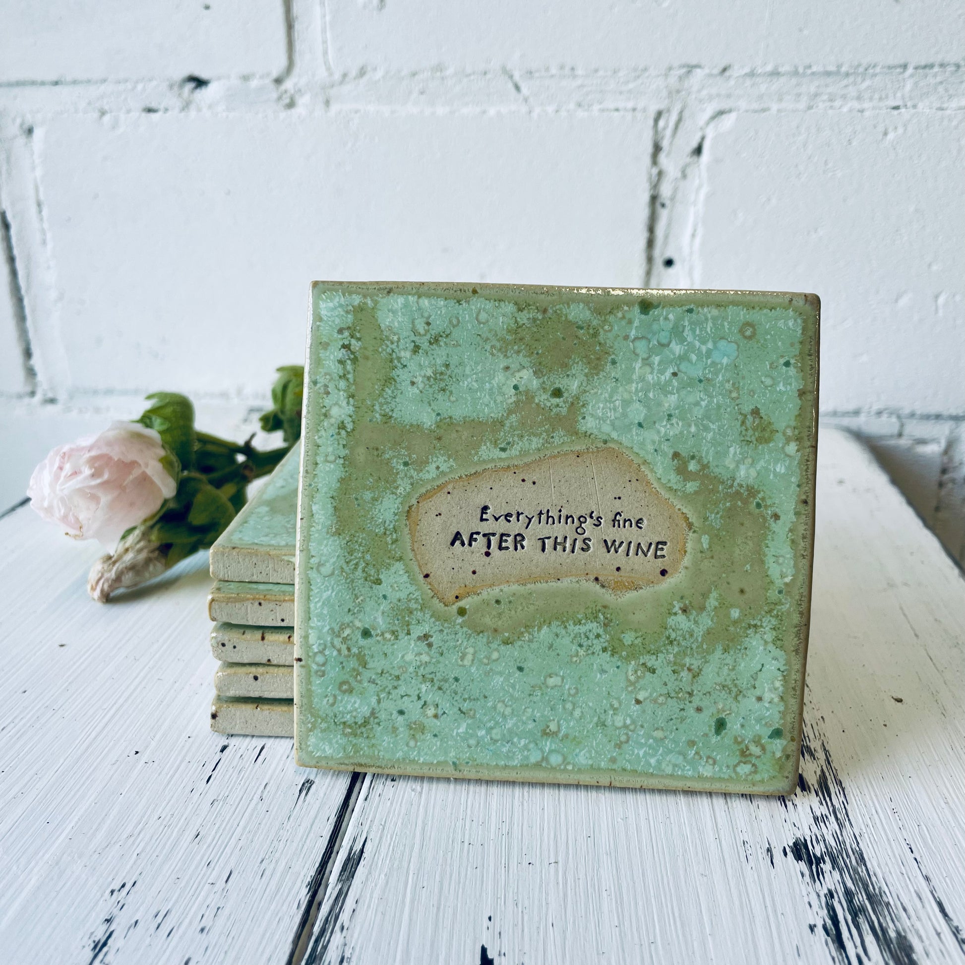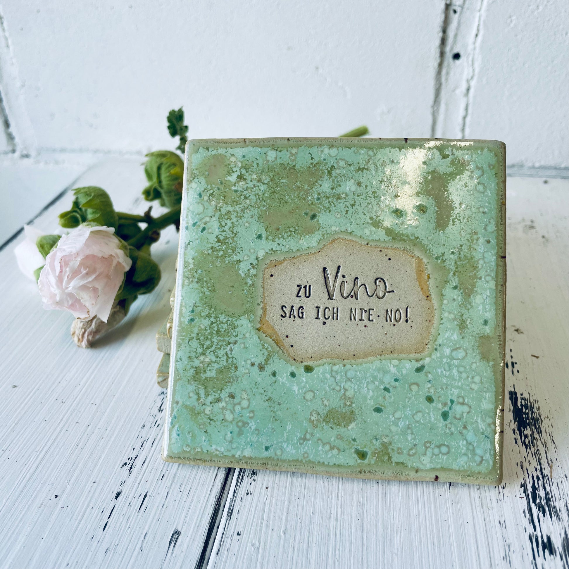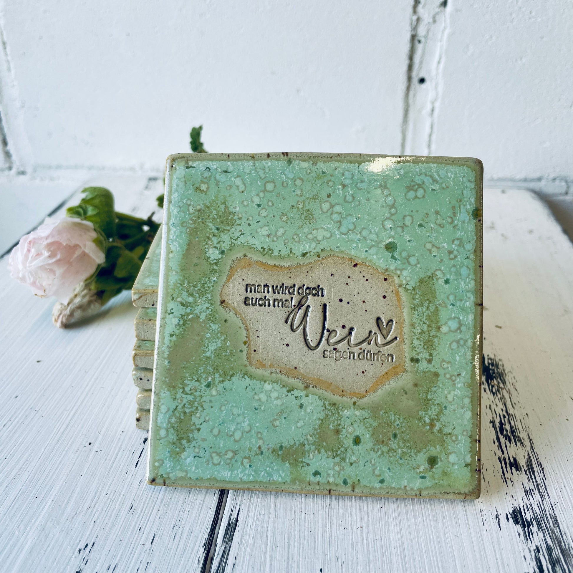 Jeder Untersetzer ist ein echtes Unikat: in Handarbeit gefertigt, glasiert und mit einem humorvollen Spruch versehen. Ideal als Geschenk für die beste Freundin, als Mitbringsel zur Party oder einfach für dich selbst, um deine Bar-Ecke aufzupeppen.