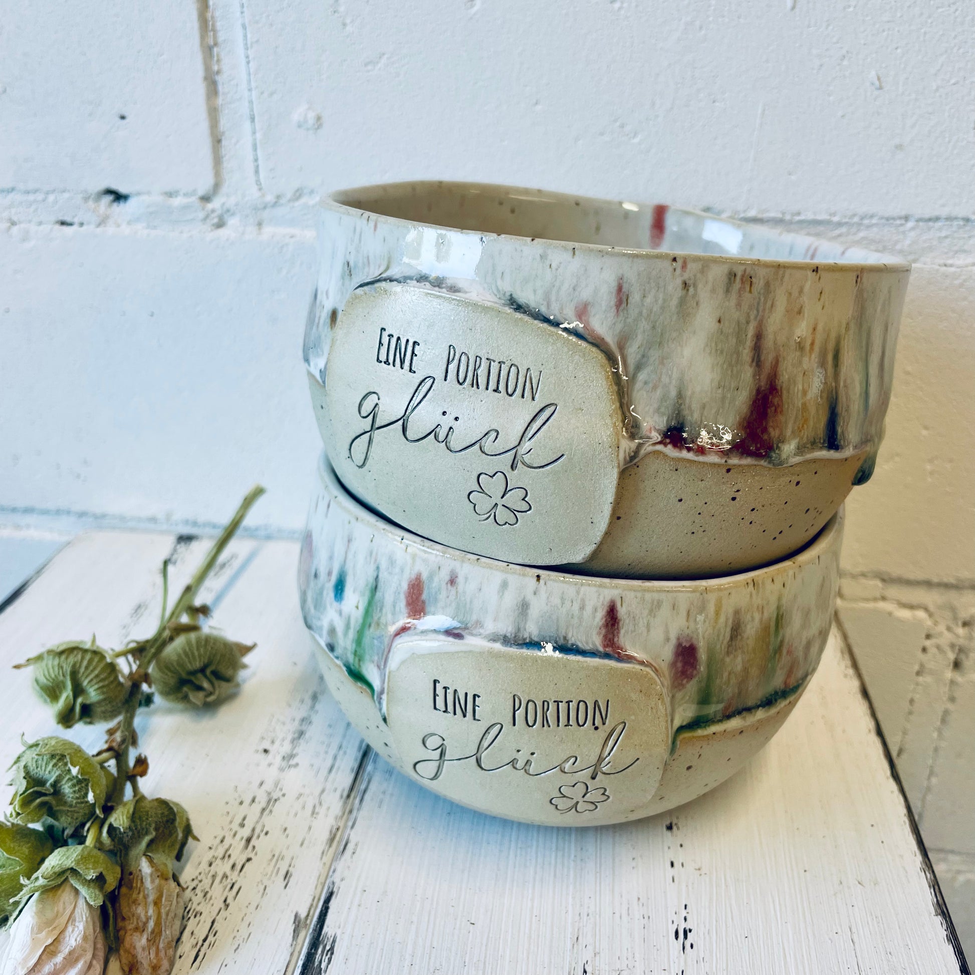 Handgemachte Keramikschale – „Eine Portion Glück“ – einzigartiges Geschenk – Keramik Bowl