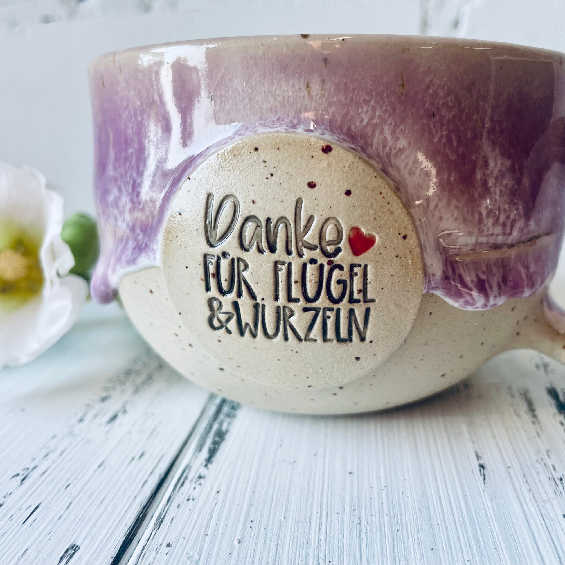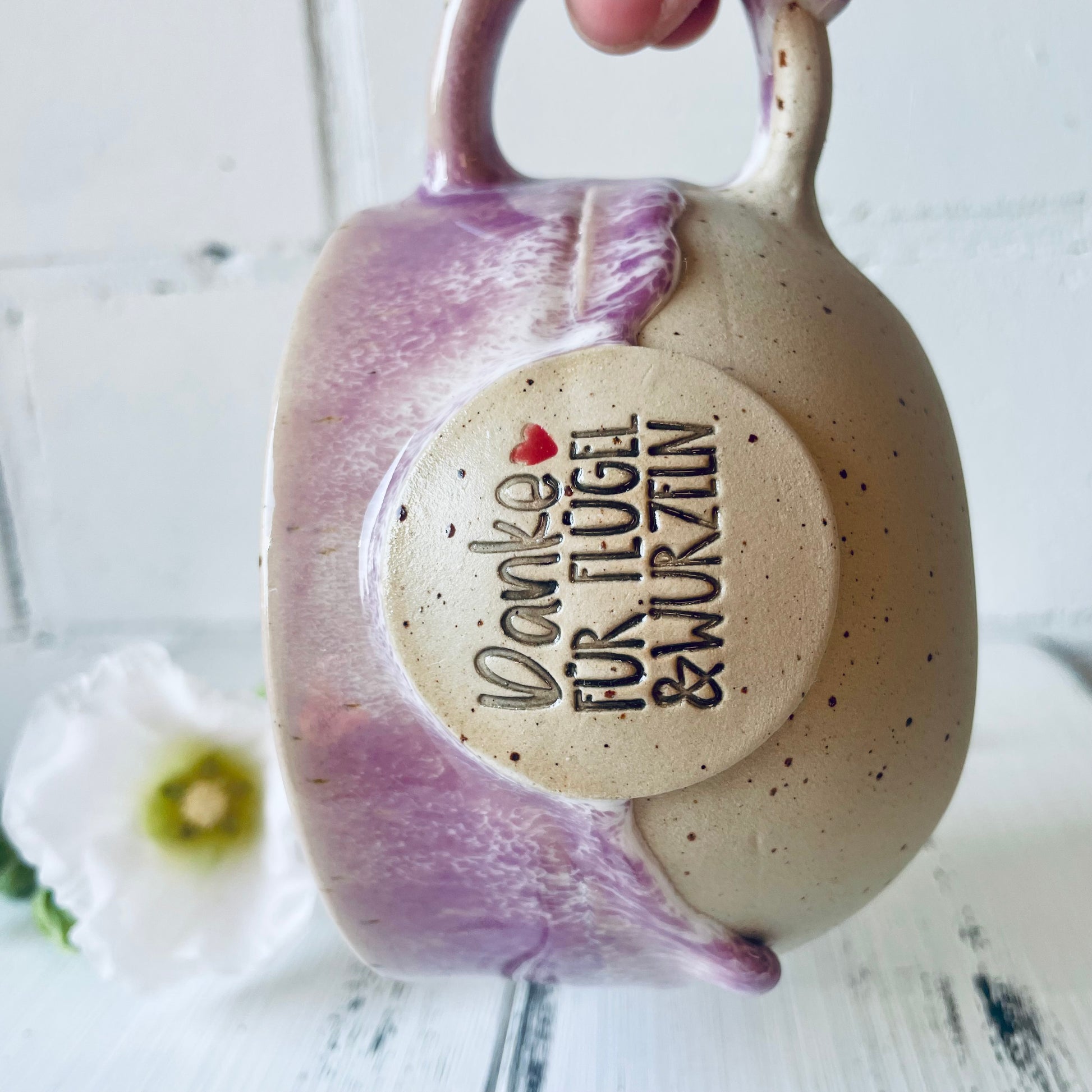Diese liebevoll handgetöpferte Tasse ist nicht nur ein Alltagsbegleiter, sondern auch ein besonderes Geschenk mit Bedeutung. Auf der Vorderseite steht die Botschaft „Danke für Flügel & Wurzeln“ – perfekt, um Wertschätzung auszudrücken, z. B. für Lehrer:innen, Eltern, Freund:innen oder Mentor:innen. ✨