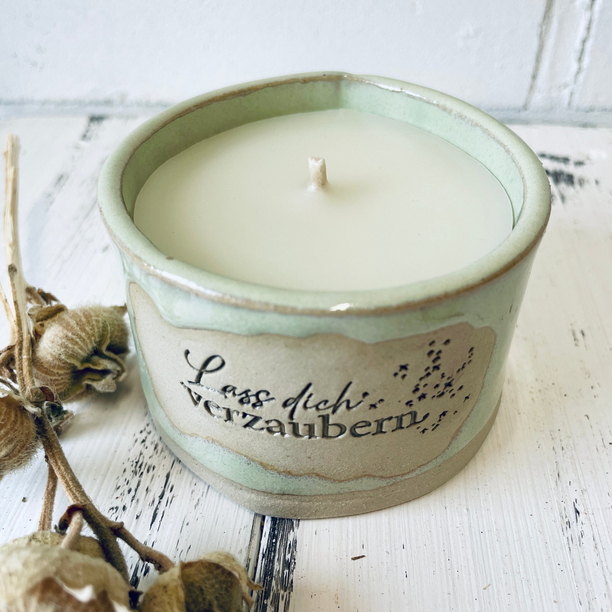 Keramik-Kerze mit Spruch – „lass dich verzaubern “