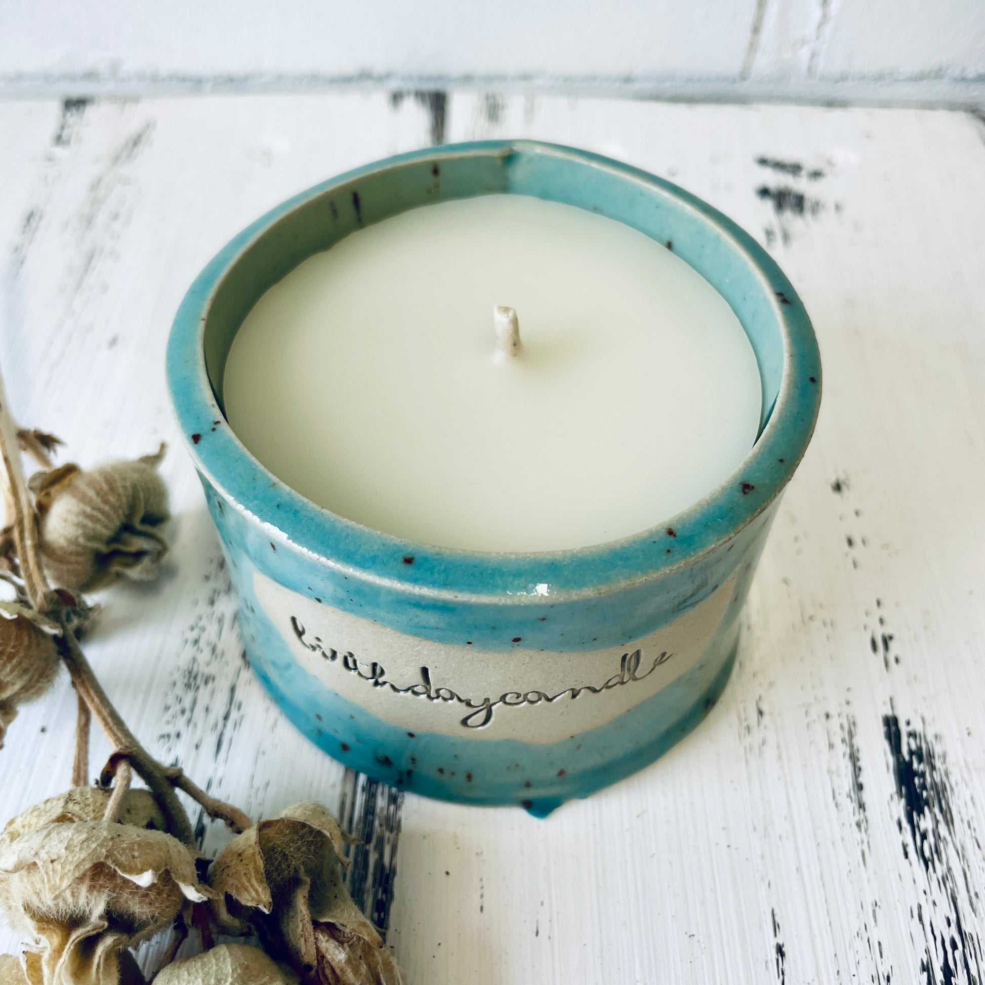 Diese besondere Kerze ist in einem von mir getöpferten Becher gegossen, der mit dem Spruch „birthdaycandle“ versehen ist – perfekt für alle, die einfach mal danke sagen wollen.