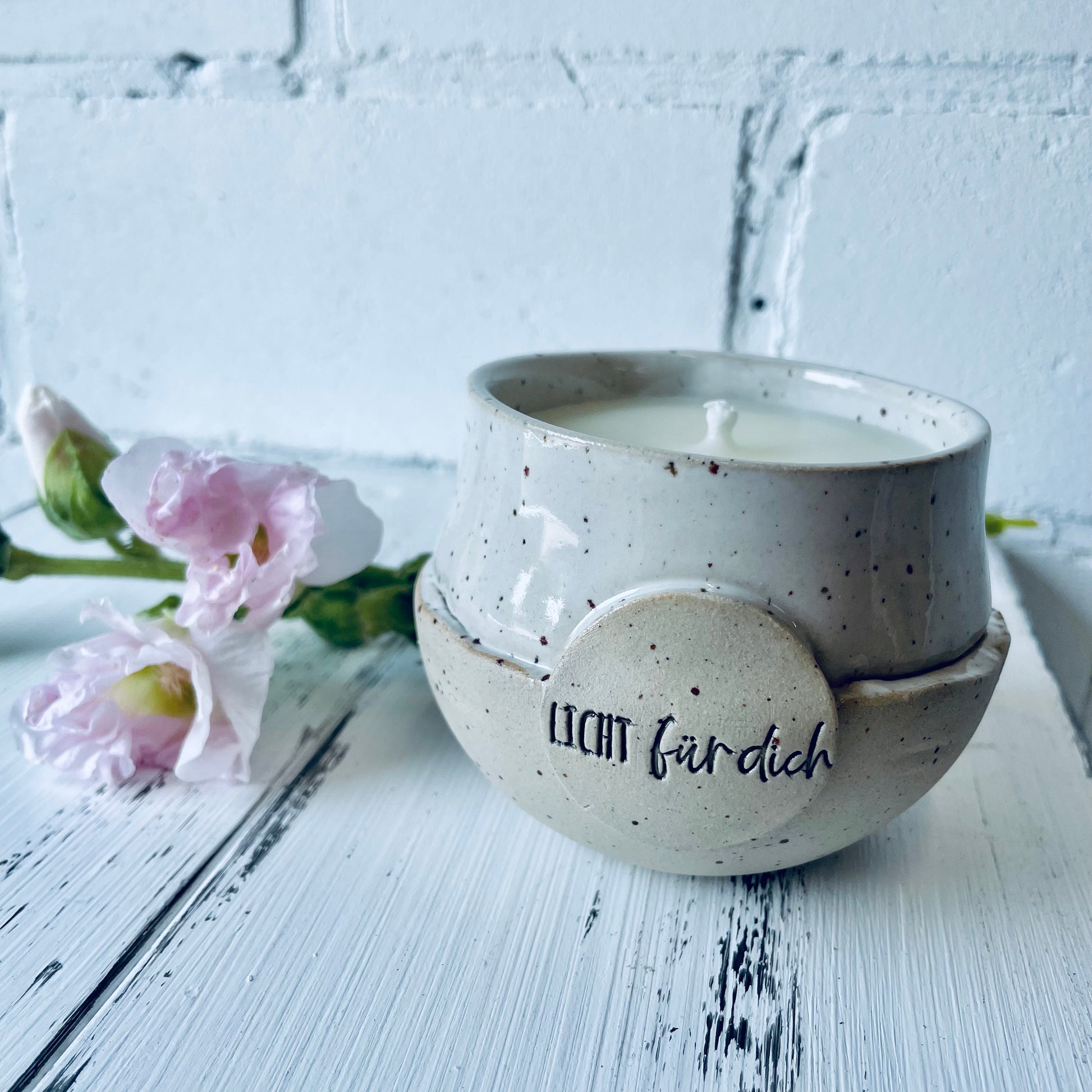 Licht für Dich – Handgemachte Kerzenkeramik mit Baumwolldocht, Bienenwachskerze